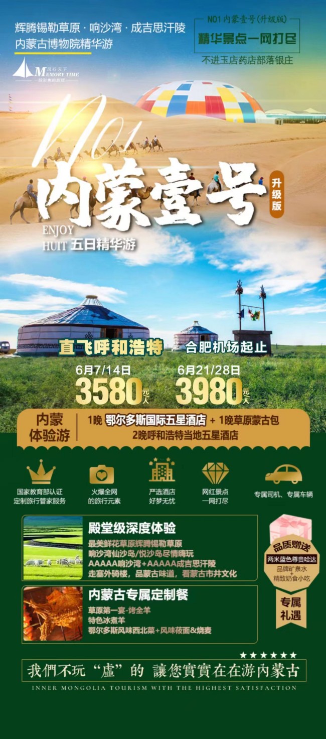 4、交通:出发地-呼和浩特往返经济舱,当地旅游巴士,保证每人一正座;