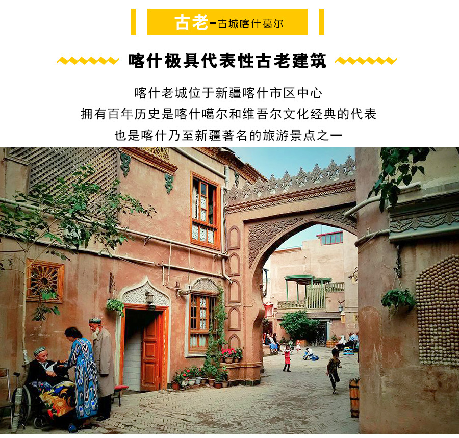 5、景点:实际游览景点(含景点首道大门票): 罗布人村寨,天山神秘大峡谷,核桃王公园,卡拉库里湖,香妃墓,艾提尕尔清真寺,喀什老城。